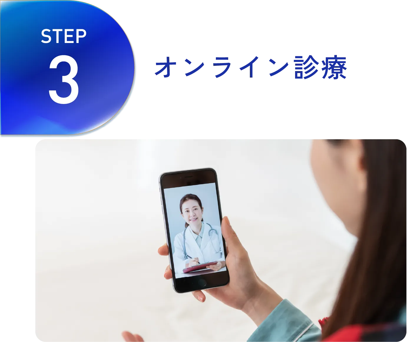 ビデオ通話または電話で初回の診察とお薬の処方を行います。