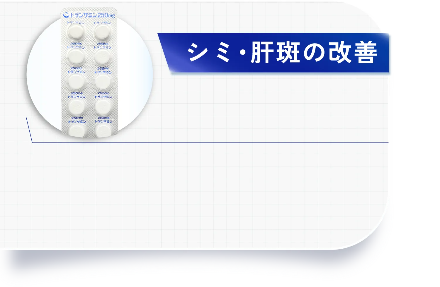 日焼けなどで炎症した肌の色素沈着を抑える作用があり、特に肝斑治療に使用されることが多く、肌のくすみ改善も期待できます。