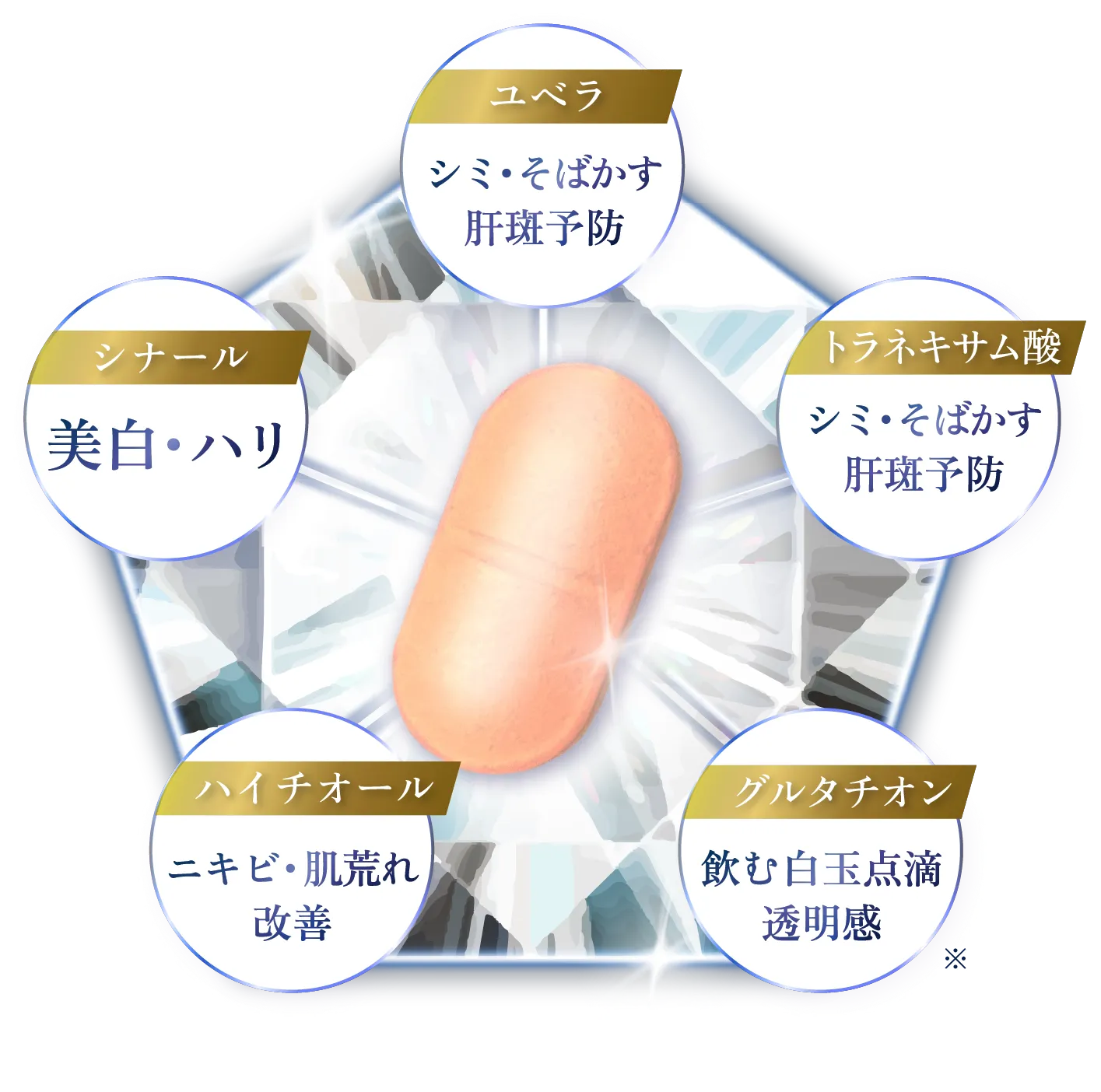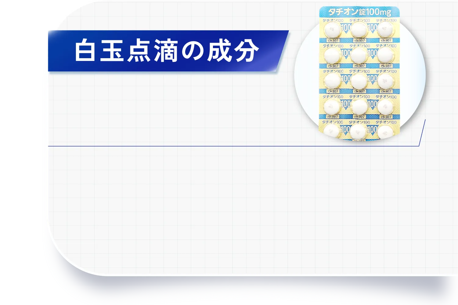 ビタミンC・トランサミン・L-システイン・グルタチオンを指します。