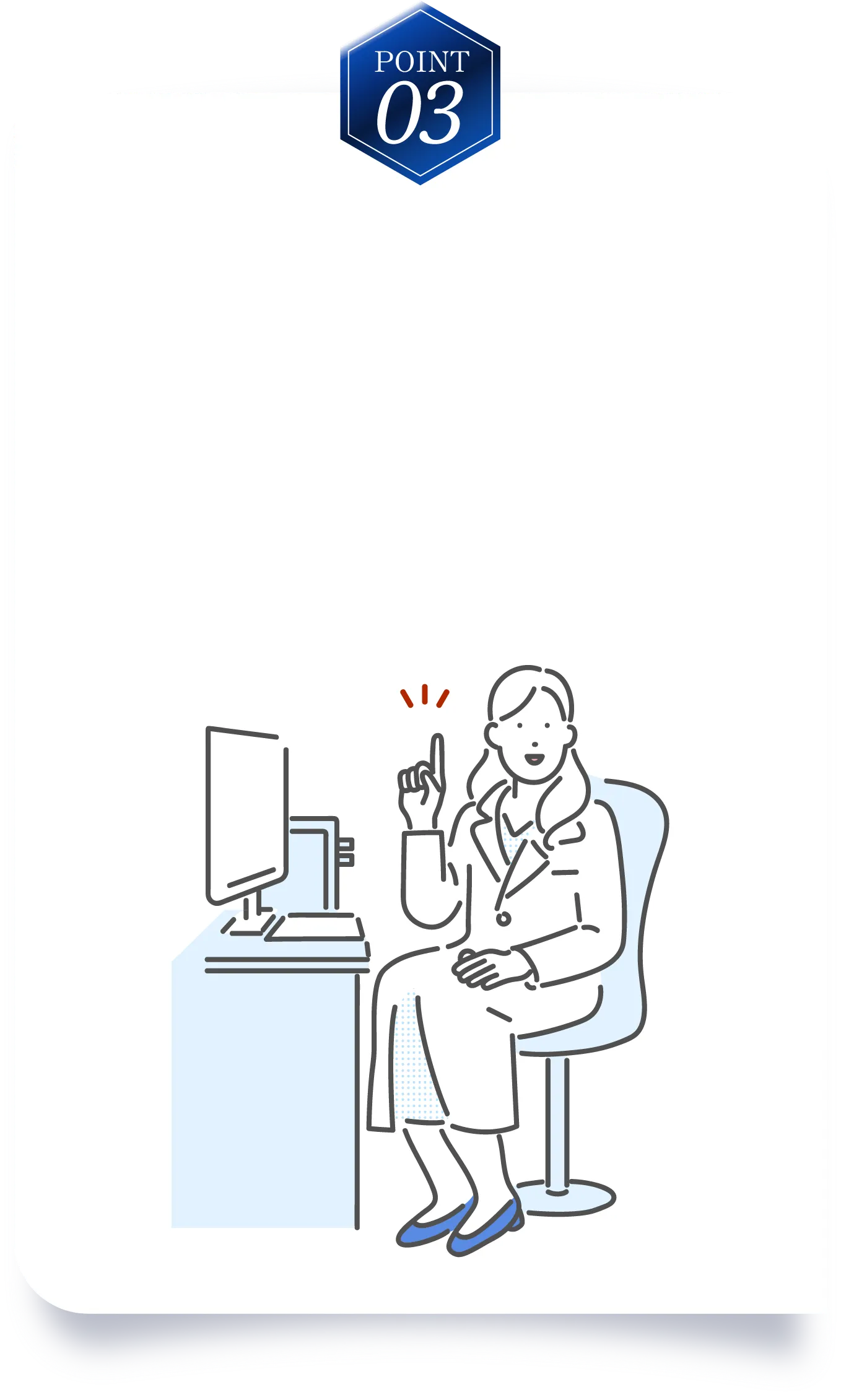 処方後も、なにか不安なことなどございましたら、医師がフォローします。“かかりつけ医”として頼っていただけるようにアフターフォロー体制を整えています。