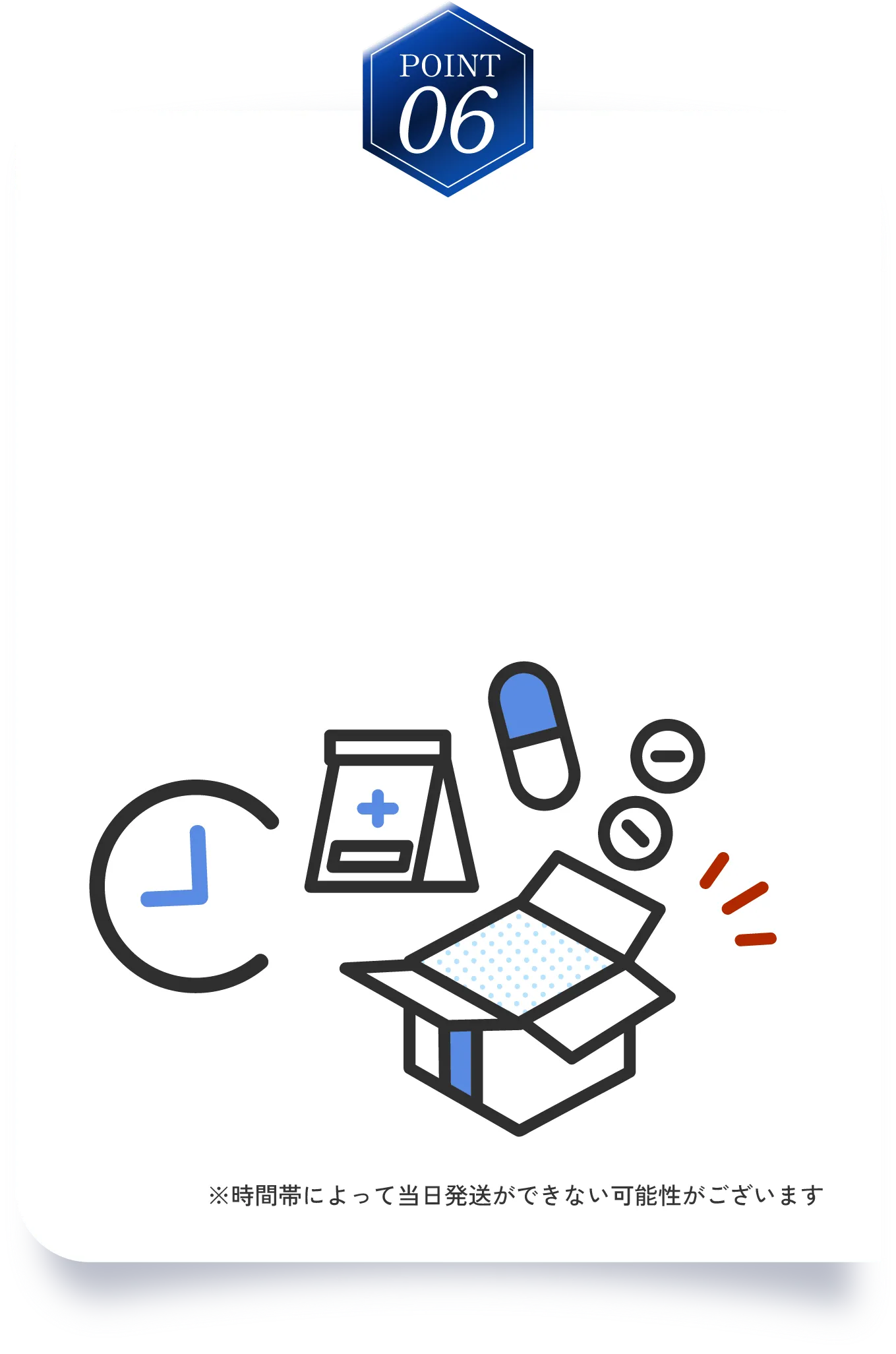 診察当日に美容内服薬をご自宅へ発送することができます。お急ぎの方でもすぐにお薬をお届けすることができます。