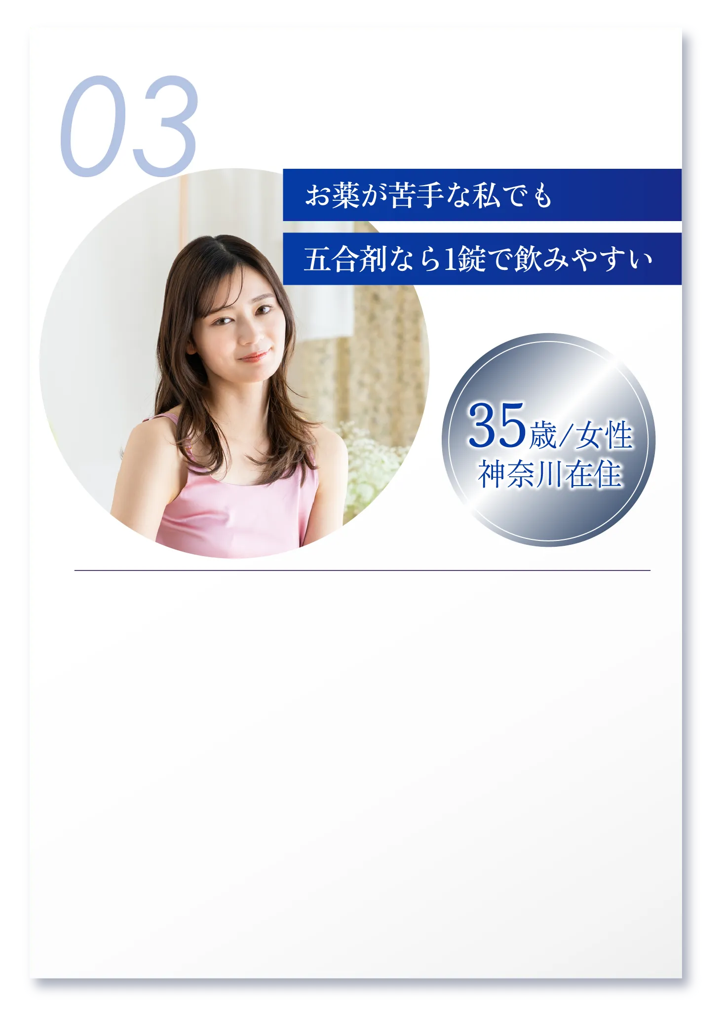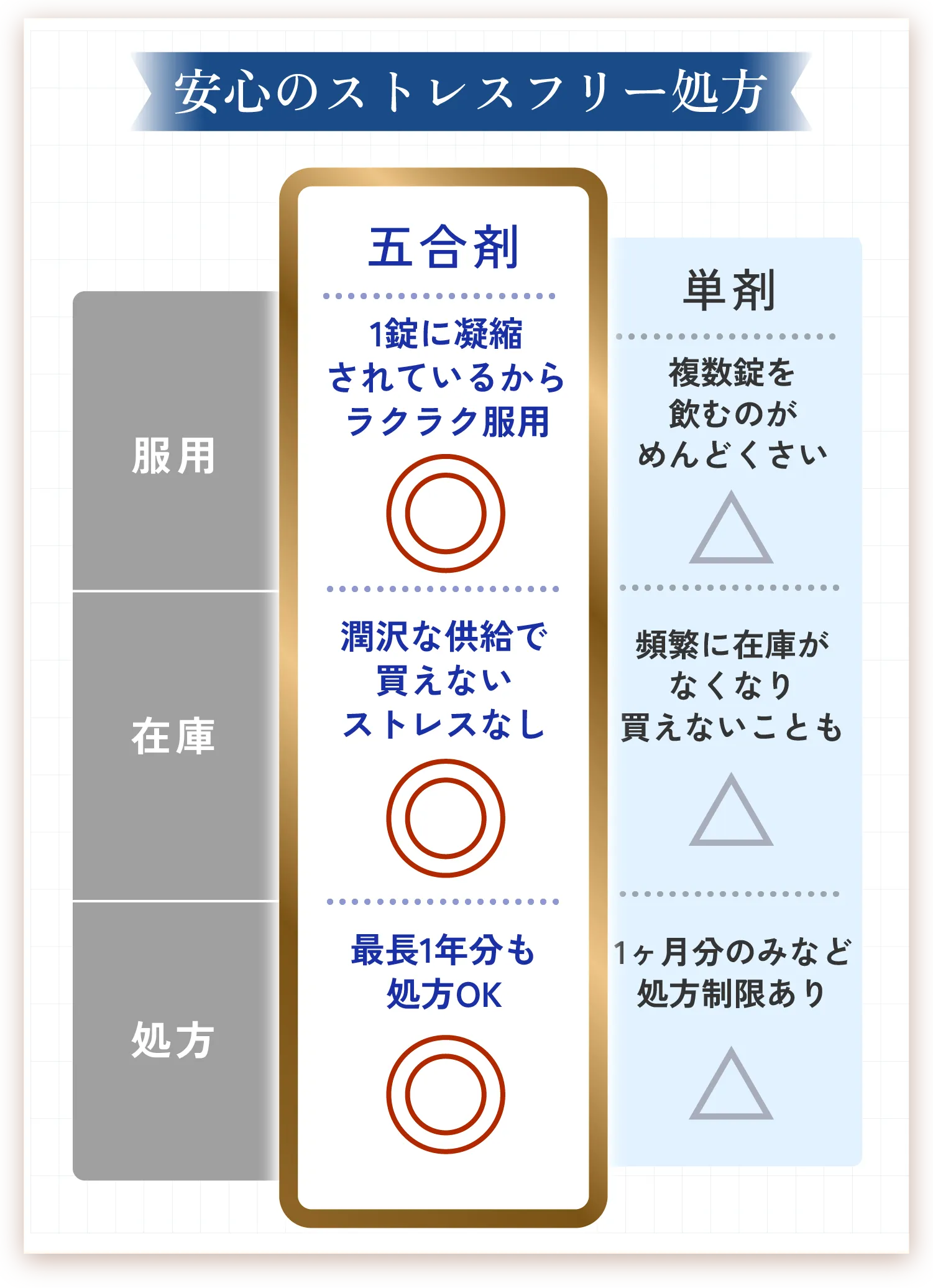 美容内服薬のオールスターと言えるほどの人気成分5種類を贅沢に配合した五合剤を、オンライン診療で処方できます!美容内服薬が初めての方もまずは五合剤から始めていただけます。