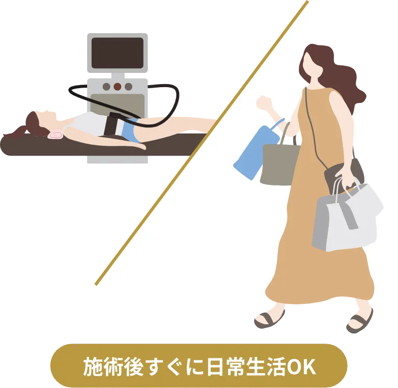 赤みや腫れなどのダウンタイムもほとんどなし。「治療のあとお出かけする」「スキマ時間で美容医療を受けたい」という方でも安心してダイエットプランに取り入れることが可能です。